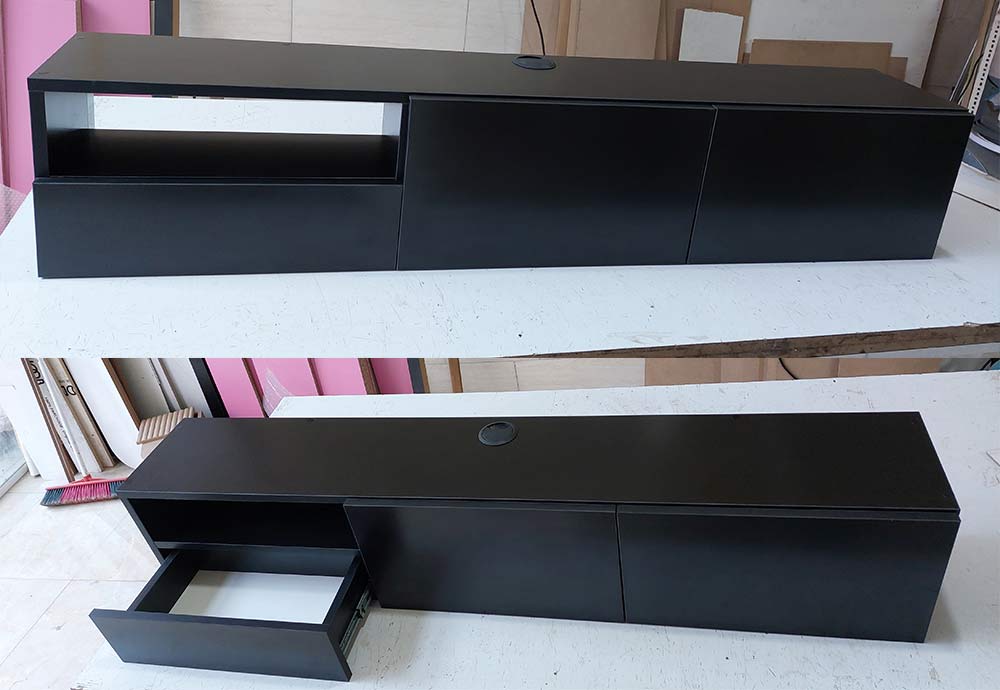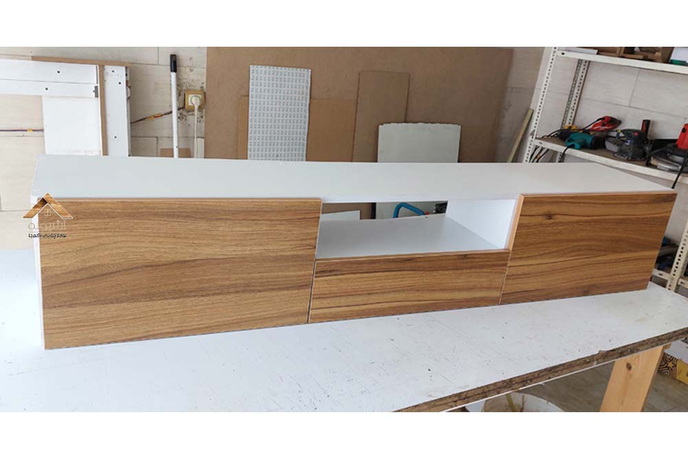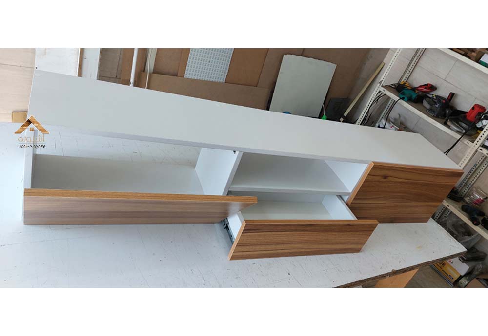 طول میز 130 سانت بوده که مناسب برای تلویزیونهای ۳۲ تا ۵۰ اینچ خواهد بود. البته یک تی وی ۵۰اینچ طولی معادل ۱۱۰ سانت دارد ولی بهتر است برای حفظ تناسب اندازه و زیبایی ظاهری طول میز کمی بیشتر از تی وی باشد. تمامی ابعاد و سایزبندی و همچنین رنگبندی کار بر حسب نیاز مشتریان گرامی قابل تغییر و اجرا خواهد بود.